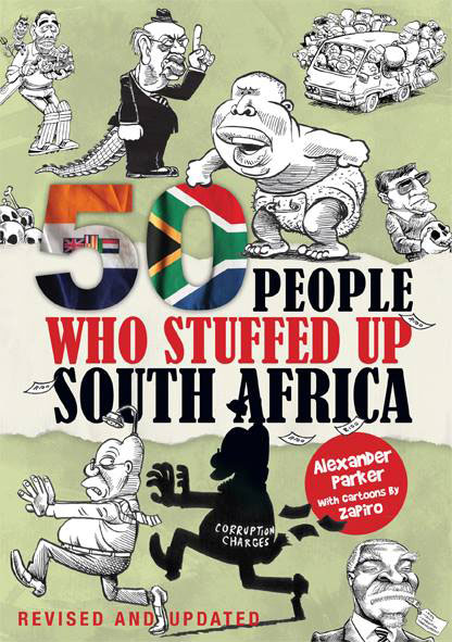 '50 People Who Stuffed Up South Africa' and '50 Flippen Brilliant South Africans'.
