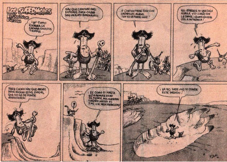When Adelante went out of print in the early 1990s, Fernando Zeledón continued his satirical work in Universidad, a serious and objective national newspaper published by the University of Costa Rica. He named his new page 'Los Supermaes' (1990-1997), referring to the popular Costa Rican slang word "mae", which is comparable to the English "dude". The page strongly attacked neoliberal politics, but eventually had to be canceled due to lack of budget. Zele then served as editor-in-chief of the newspaper El Heraldo from 1998 to 2004, before joining Pueblo, the paper of the left-wing Broad Front (Frente Amplio) party between 2006 and 2012. During these years, he critically commented on the Free Trade Agreements, corruption and the governments of presidents Arias Sánchez and Chinchilla Miranda. F. Zele furthermore illustrated 'Del amor y algunos entredichos' (1995), a book with humorous poems by T. Joroba, pseudonym of Francisco Zúñiga Díaz.