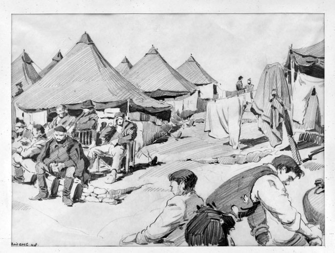 1948 drawing made in one of the camps where Zisis lived in exile during the Greek Civil War.
