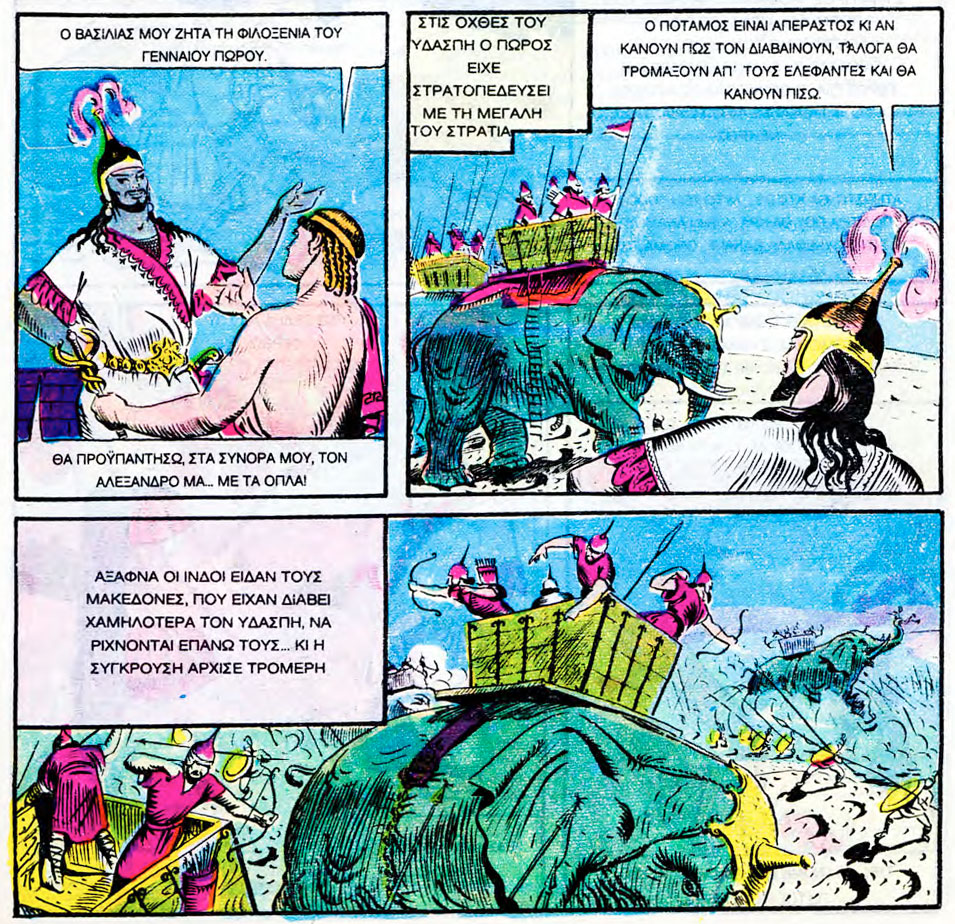 As an artist, Zisis collaborated with the Atlantis publishing house of Giorgos Pechlivanidis, responsible for the Greek translations of the 'Classics Illustrated' series ('Κλασσικά Εικονογραφημένα'). The American comic books with adaptations of literary classics was launched in Greece in 1951, with translations by Vassilis Rotas. From October 1953 until the early 1960s, the translated issues were supplemented with locally produced installments, presenting tales from Byzantine/Greek history and ancient mythology in comic book format. Zisis drew installments about famous historical characters like Alexander the Great and the 18th-century writer and revolutionary Rigas Feraios. Other local illustrators for the Greek 'Classics Illustrated' were George Vakalo, Bost, Pavlos Valasakis, Gerasimos Livieratos, Takis Katsoulidis, Giannis Dragonas, Nikos Kastanakis, Alkmini Grammatopoulou and Costas Grammatopoulos.