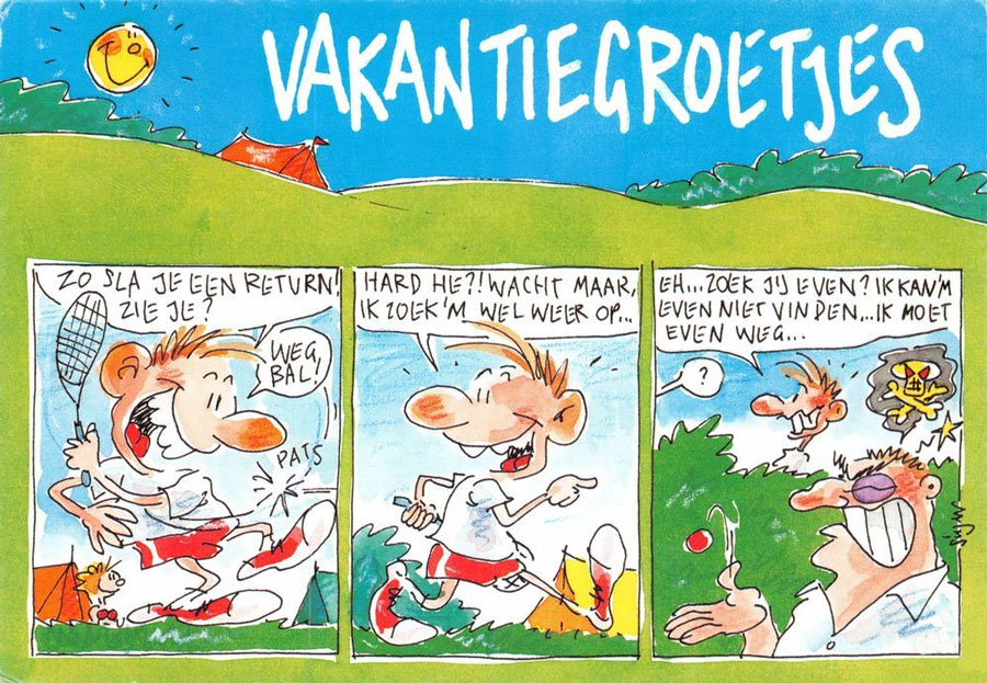 Postcard with comic strip for Huisinga Produkties.