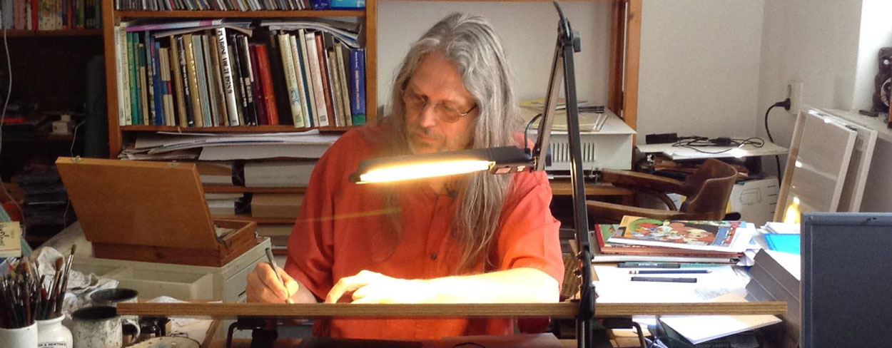 Sieger Zuidersma is a multidisciplinary artist from the Groningen region, who has worked as a cartoonist, illustrator, animator, musician and, in later years, mostly as a painter. Starting in the 1980s, he has created many commissioned cartoons and comic strips for staff magazines and other clients. A more personal creation was 'De Oude Meester' (1994-2014), a gag strip inspired by his painter father. In addition, Zuiderma has been a regular scriptwriter for the Dutch Disney magazine Donald Duck, notably creating the character of Rik, a friend of Huey, Dewey and Louie who is in a wheelchair.