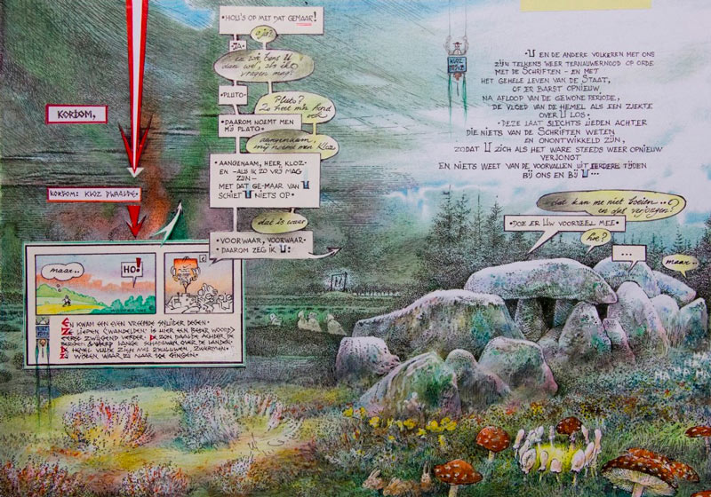 Zuidhoek has written and illustrated many books, as well as text stories for Donald Duck weekly. One of his most notable creations is the highly original and lavishly illustrated book 'De Verzinsels van Vader Wapper' (1974), which consisted of fairy tales, comic stories ('De Egotrips van de heren Gandalf en Wapper' and 'Het Kraambed') and actitvity pages in which the reader must paste the images himself. During the book presentation in the Amsterdam department store De Bijenkorf, TV presenter Mies Bouwman described Zuidhoek as a "wanderer, philosopher and realist".