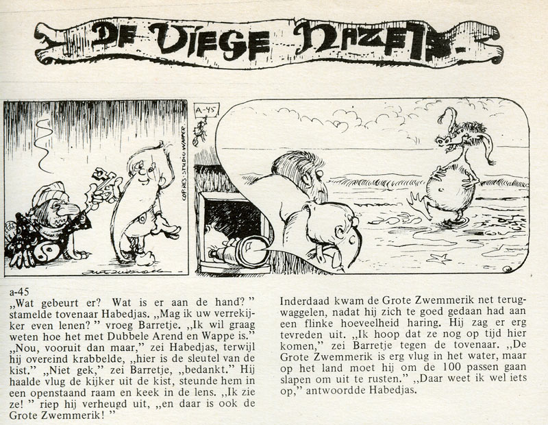 Arne Zuidhoek studied at the Academy of Fine Arts in Amsterdam, and eventually settled in Utrecht. In 1968, he started Studio Wapper with Wim van de Sanden, through which he created comics for several local publications. The first was 'Bertus Knijp & Pieters' in Nieuw Utrechts Dagblad in 1968-1969, followed by 'De Vieze Nazels' in both Havenloods/Het Zuiden and Groot Utrecht in 1970-1971. Nieuw Utrechts Dagblad and Havenloods/Het Zuiden also ran his strip 'Wally' in 1969-1970. He worked with Guus Dijkhuizen on 'Orgus' in Gandalf (1969-1970). Zuidhoek also published a comic in an art magazine and his comic 'Co-Starring Ko' appeared in the Dutch music magazine Aloha in 1969.