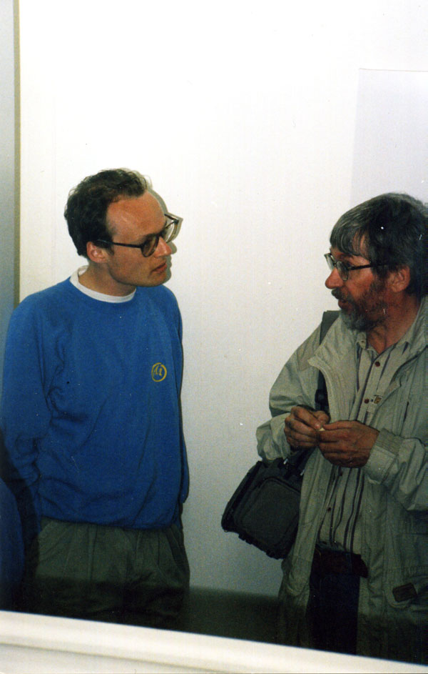 Martijn Daalder met Martin Lodewijk tijdens de Franquin-expositie in 1991