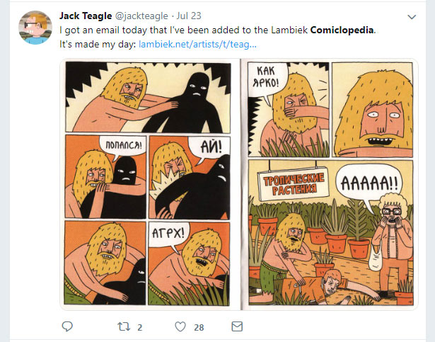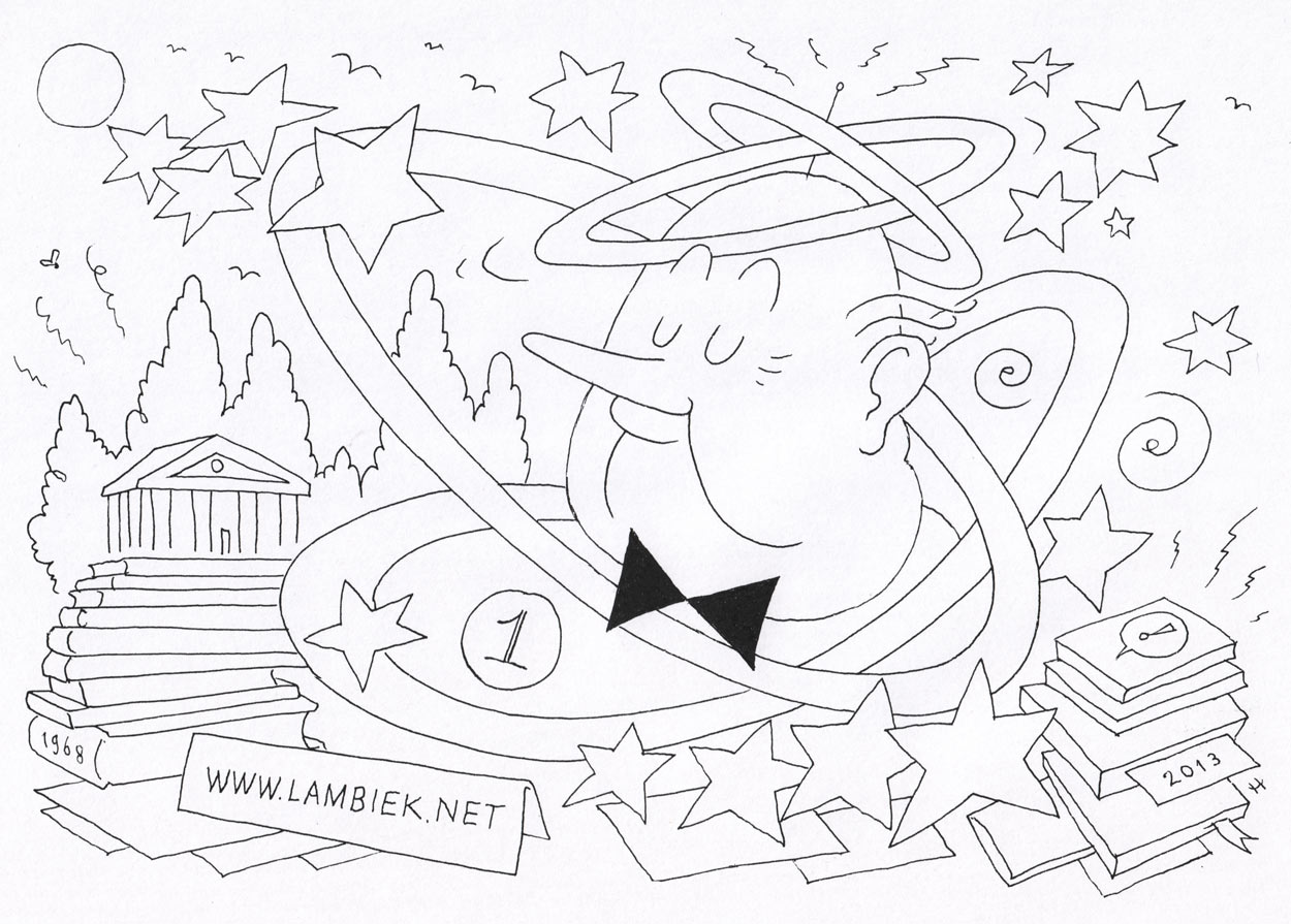 Promotional drawing for Lambiek.net by Herwolt van Doornen (2013).