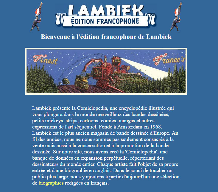 The francophone section of Lambiek.Net was online from 2002 until 2012.