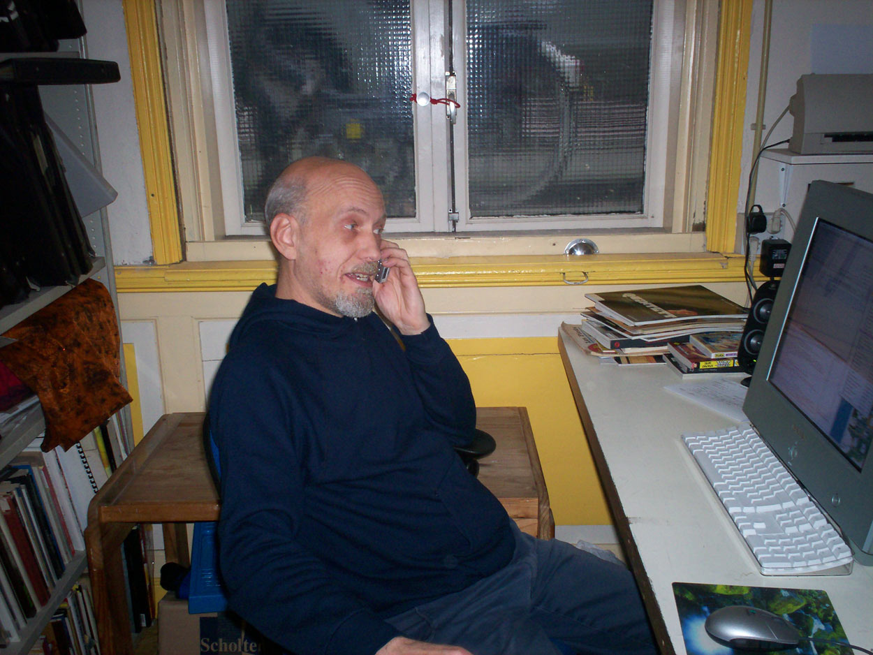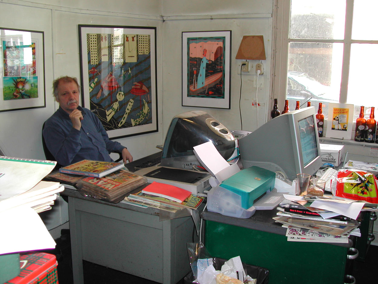 Kees at the Lambiek.Net studio in the Utrechtsedwarsstraat (2004).