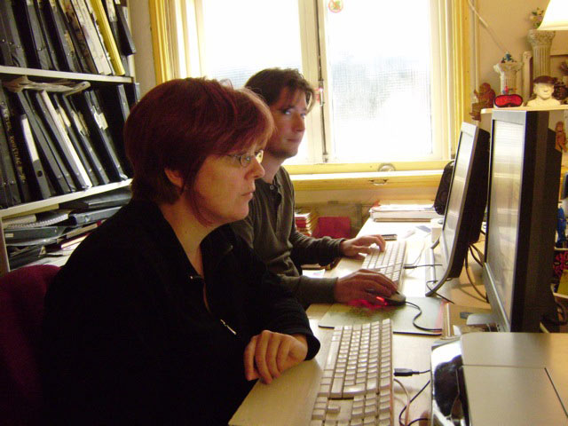 Margreet de Heer and Bas Schuddeboom revising Kees' Comiclopedia page in May 2010.