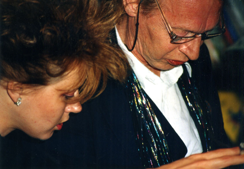 Simon Vinkenoog tijdens de Gilbert Shelton expositie in 1990