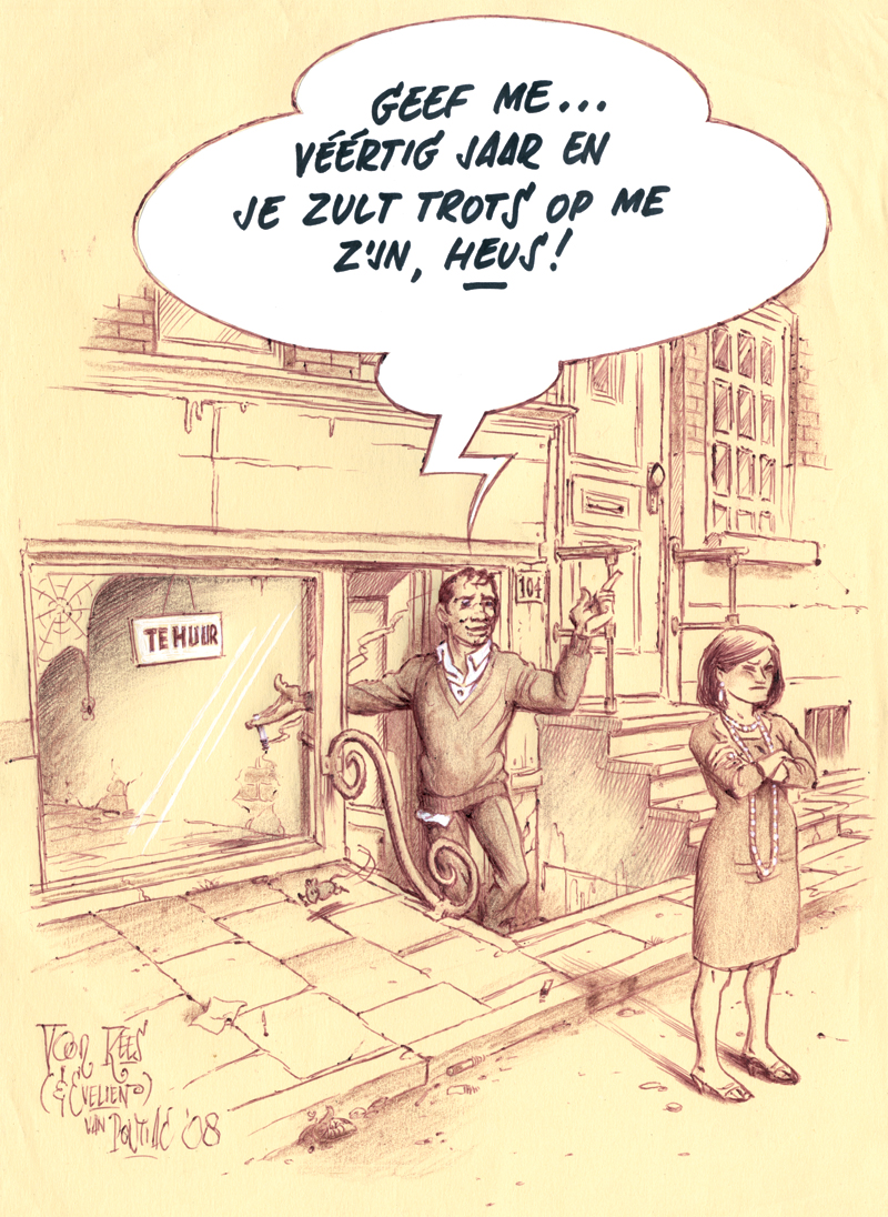 Promotional drawing for Lambiek, drawn by Peter Pontiac.
