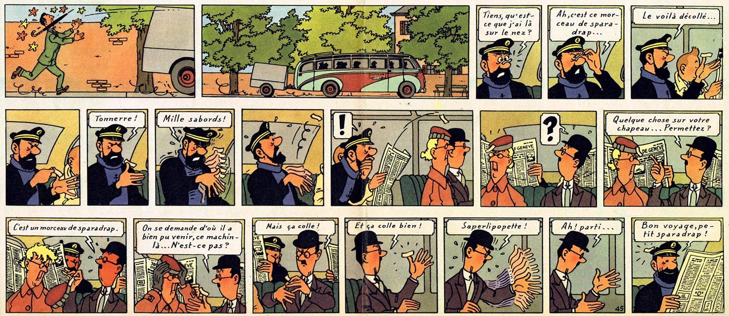 The famous plaster sequence from the Tintin story L'Affaire Tournesol (1955)