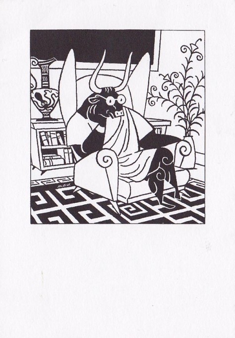 De expositie van Max in Galerie Lambiek toonde illustraties van idyllische landschappen vol mythologische wezens, en verschillende originele strippagina's.