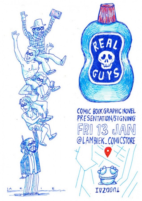 Er waren 30 jaar vriendschap en een zomer manisch ballpoint tekenen voor nodig, maar het is zover: "where are those REAL GUYS" de nieuwste strip van LarieCook is af !!